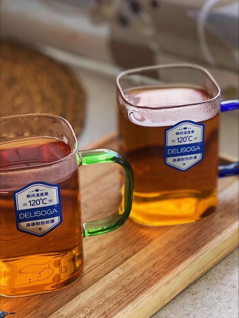 استکان مربعی دسته رنگی 230سی سی برند DELI GLASS