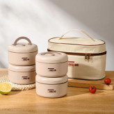 این ظرف غذا همراهش یه لانچ بگ داره جنس این لانچ بگ از برزنت درجه یک هست که داخلش عایق آلومینیومی داره و حفظ دما میکنه. دسته داره ویه بند رودوشی هم داره برای حمل راحت تر و این ساک یه جای مخصوص قاشق وچنگال هم داره. ظرف غذای چهار طبقه از ویژگی خاصش اینه که بصورت یک،دو،سه،چهار طبقه میشه ازش استفاده کرد