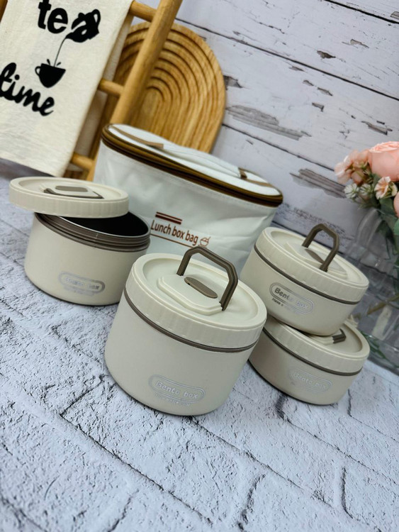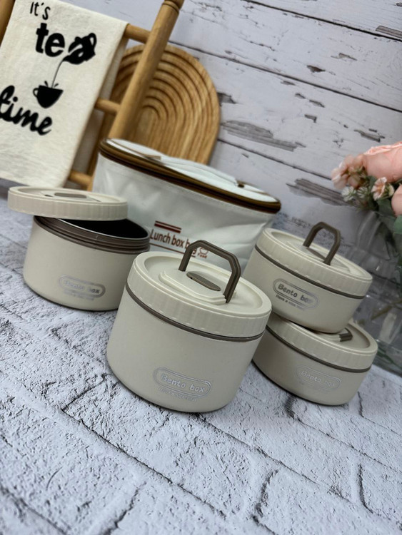 لانچ باکس (ظرف غذای بیرون بر) 4 تکه داخل استیل بگ دار