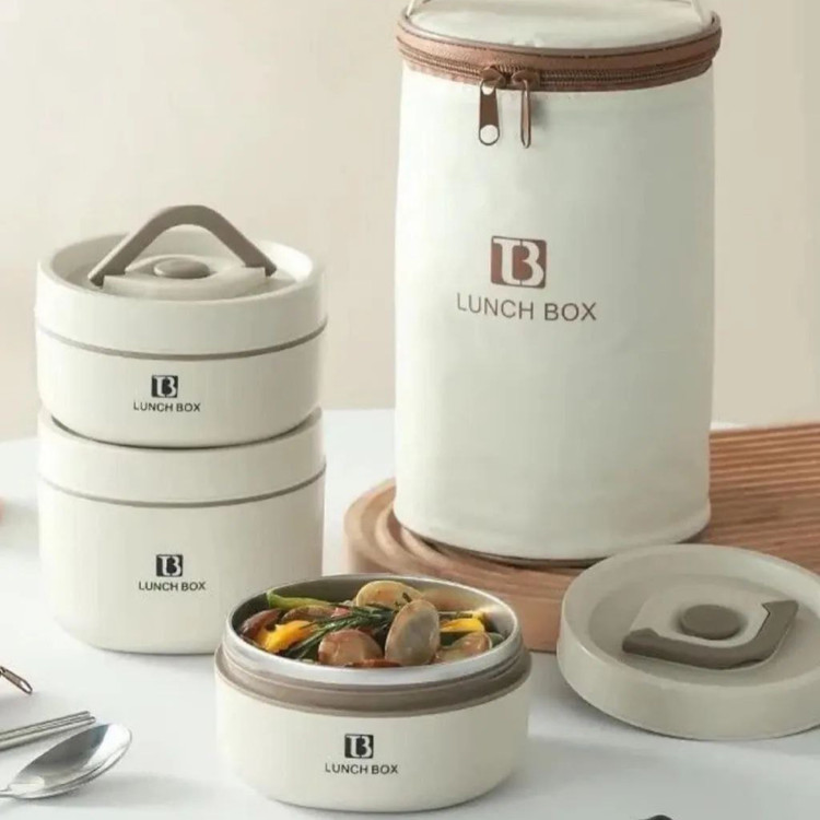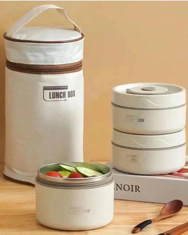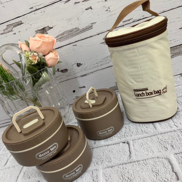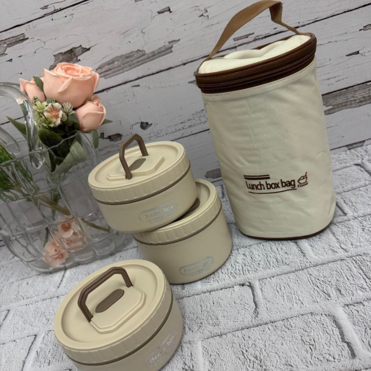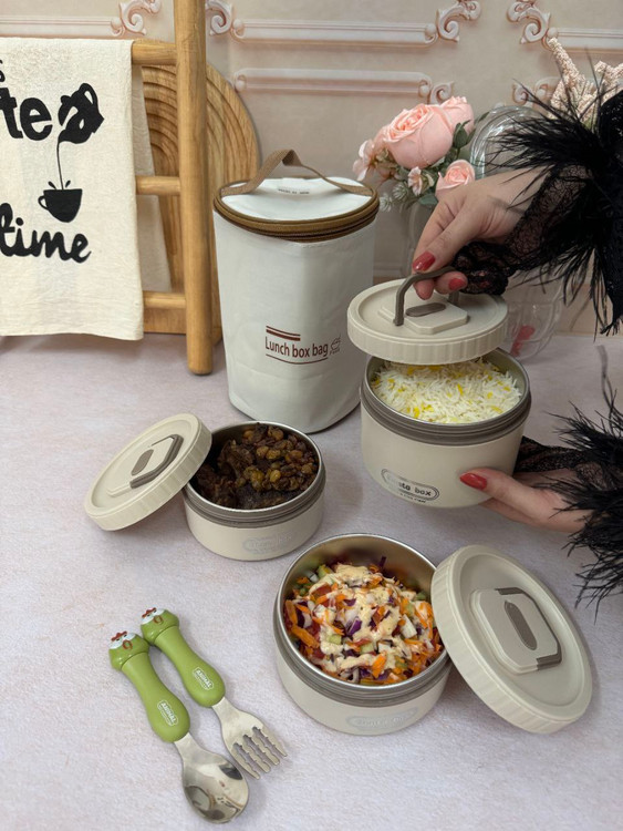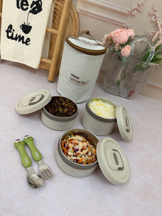 لانچ باکس (ظرف غذا بیرون بر)۳ تکه داخل استیل بگ دار