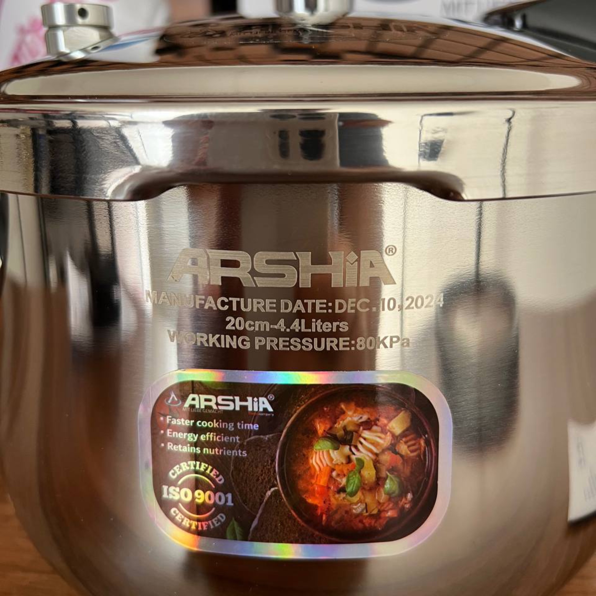 زودپز استیل 20 سانت عرشیا همراه با پوشش محکمی است و برای انواع پخت و پز مفید است.