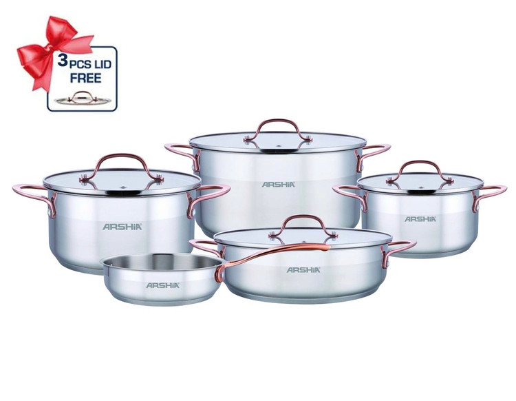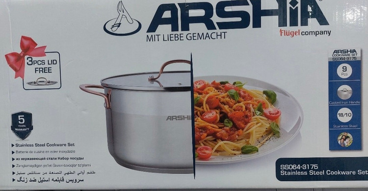 قابلمه 9 پارچه استیل ضد زنگ عرشیا مدل 3175 یک مجموعه زیبا در آشپزخانه میباشد که با ظرافت و طراحی منحصر به فرد زیبایی خاصی را به آشپزخانه شما عزیزان میبخشد.