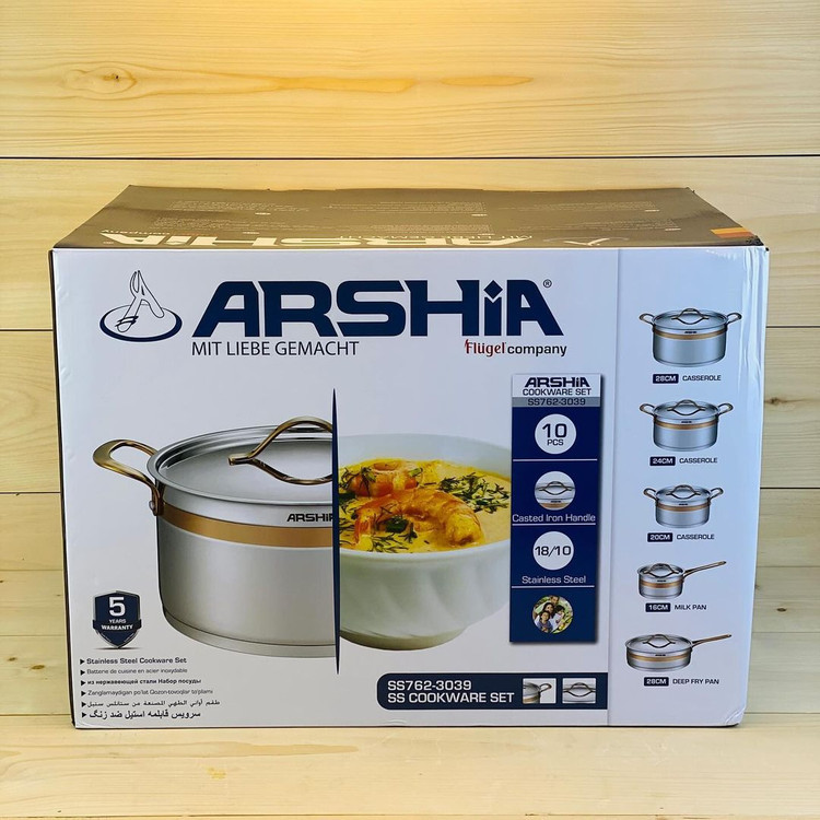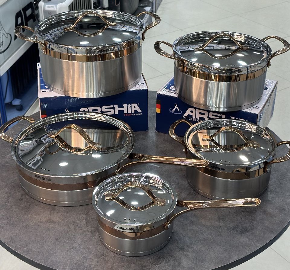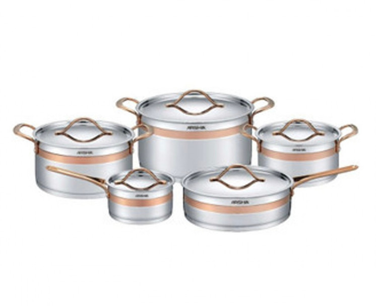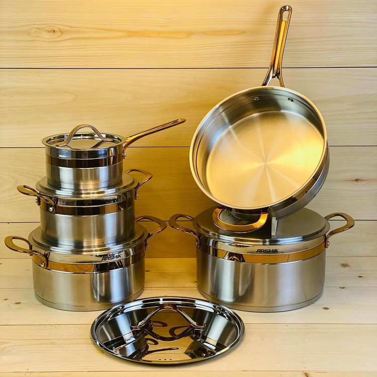 سرویس قابلمه استیل 10 تکه دور طلایی عرشیا ARSHIA مدل ‏SS762 - 3039