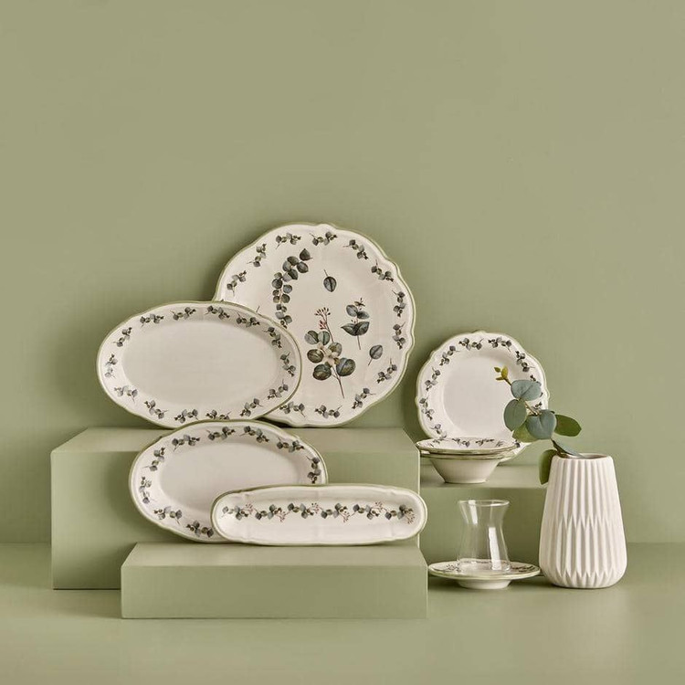 ۶ بشقاب پلوخوری / ۶ عدد استکان و نعلبکی / ۱ عدد دیس بزرگ / ۲ عدد دیس متوسط / ۱ عدد زیتون خوری/ ۲ عدد کاسه بزرگ / ۲ عدد پیاله کوچک