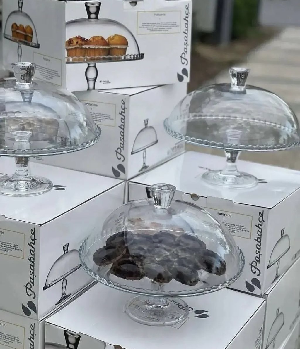 شارژ چندین باره کیک خوری پایه دار محصول Paşabahçe ترکیه 🇹🇷 جنس کریستال شفاف و سبک کیفیت عالی و کاملا براق قابل استفاده در فر و ماشین ظرفشویی قطر 32 ارتفاع 28 سانتی متر