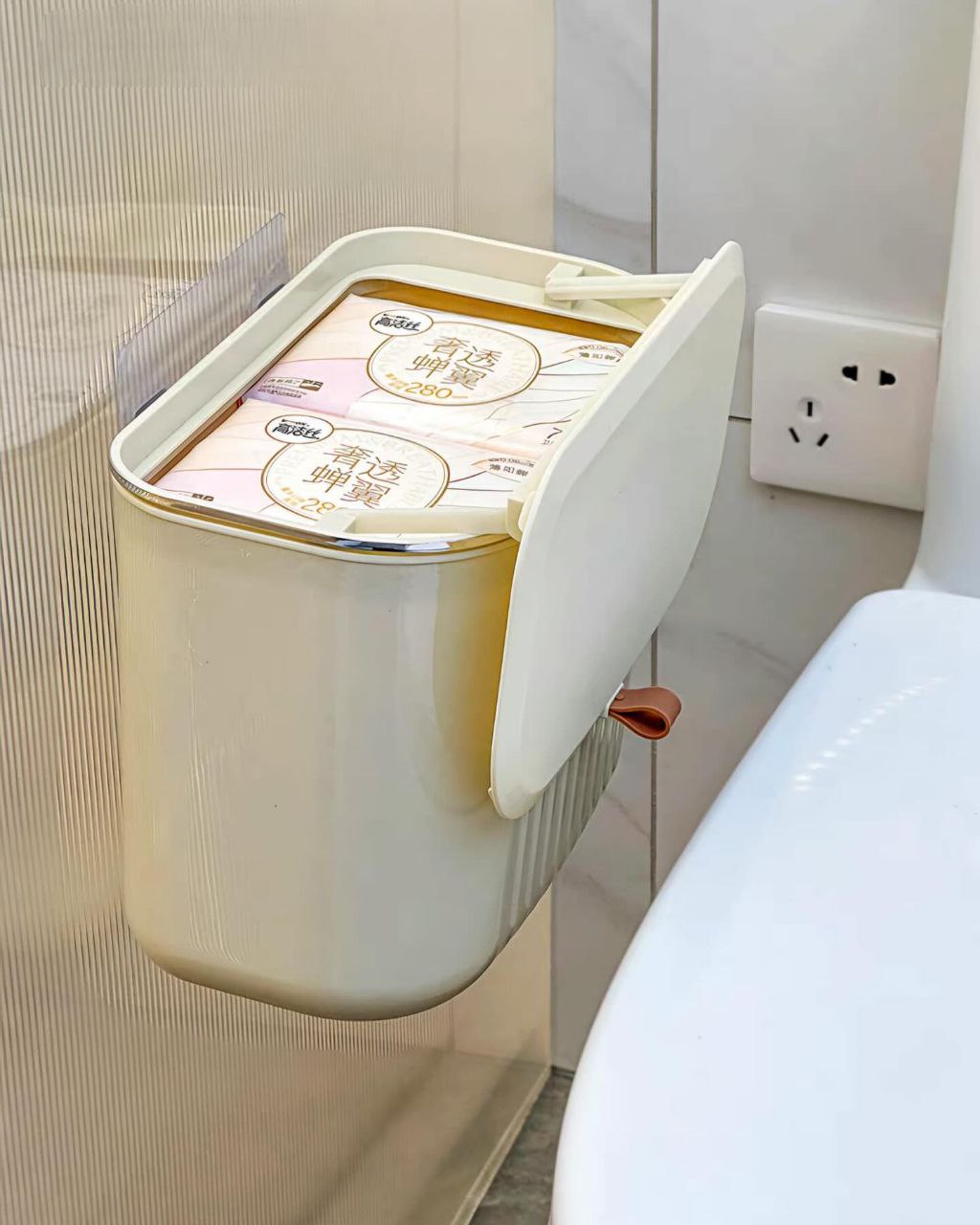 نصب دوم به دیوار حمام و سرویس بهداشتی (با گیره چسب ژله ای داخل پک روی کاشی)