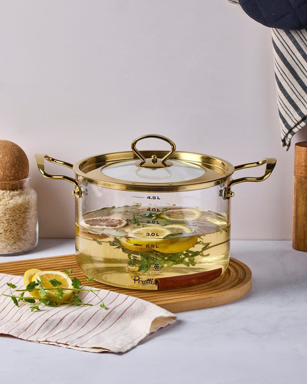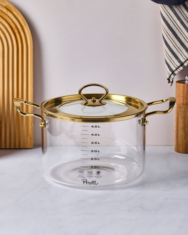 قابلمه پیرکس 4.5 لیتری طلایی و نقره ایی برند PEROTTI ترکیه