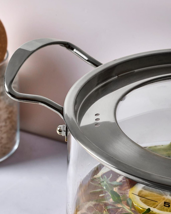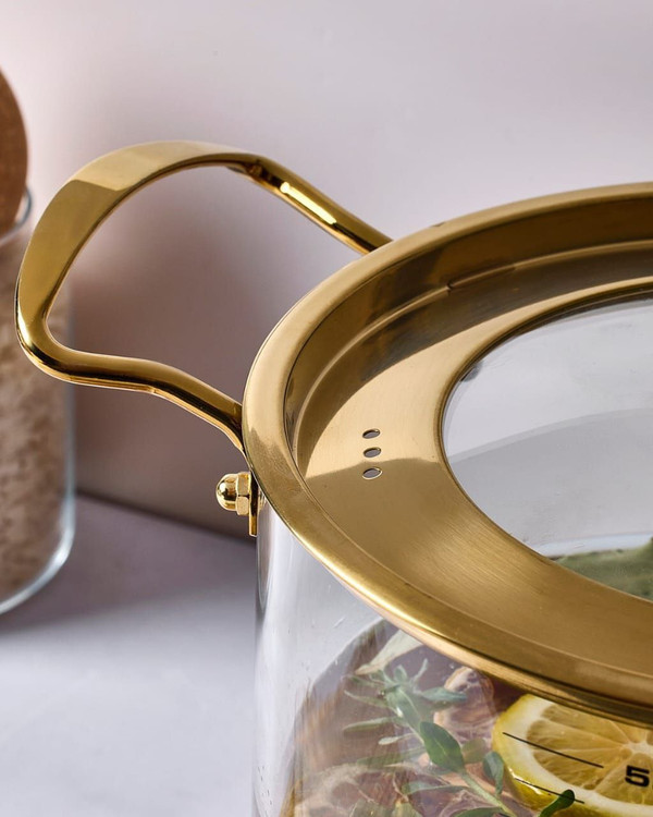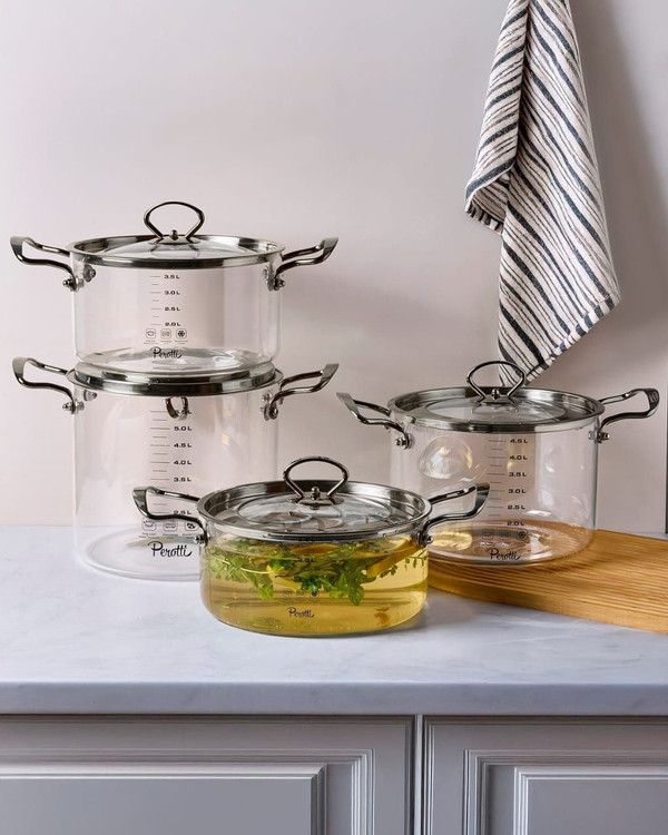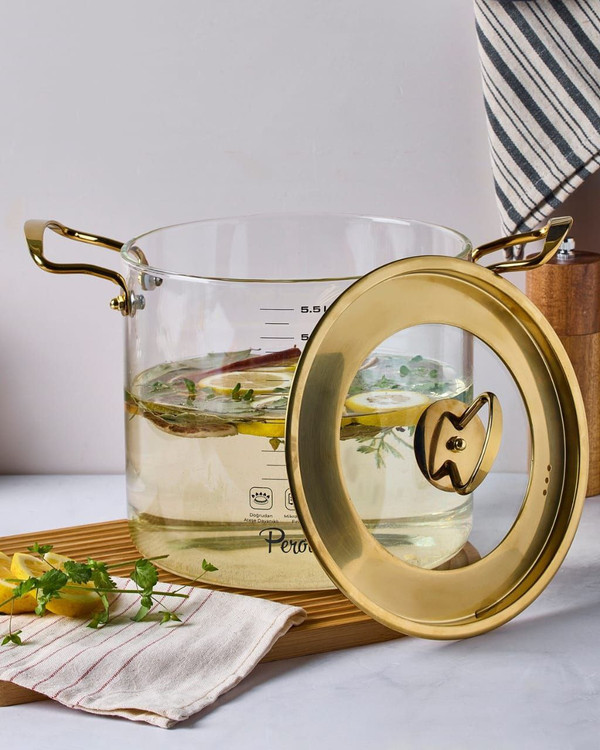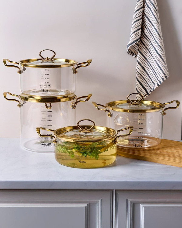 قابلمه پیرکس 5.5 لیتری طلایی و نقره ایی برند PEROTTI ترکیه