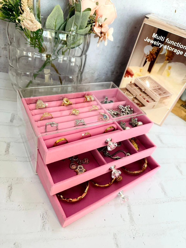 جعبه جواهرات و اکسسوری سه طبقه شیشه ای