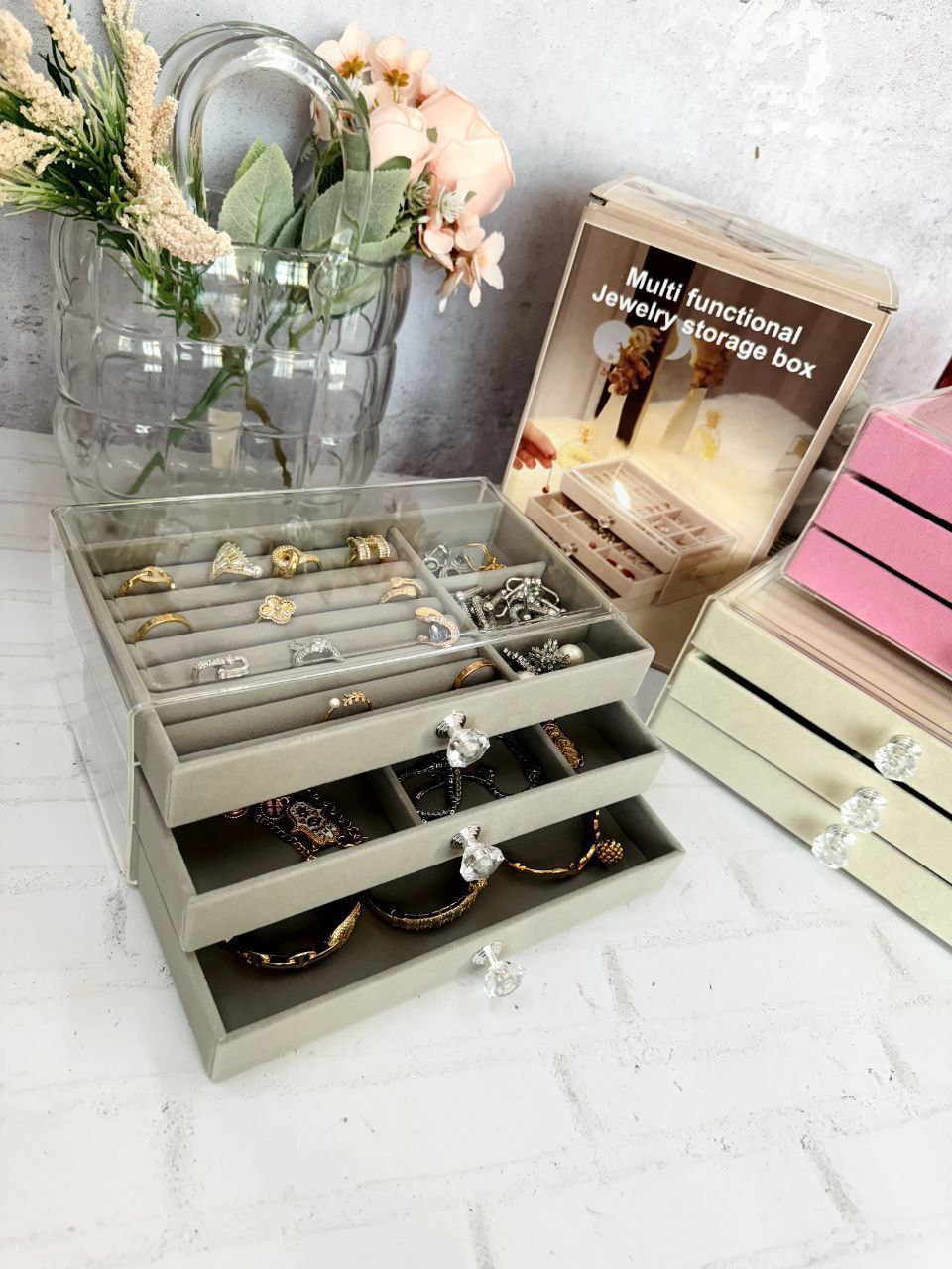 جعبه جواهرات و اکسسوری سه طبقه شیشه ای