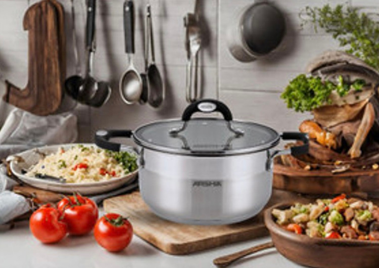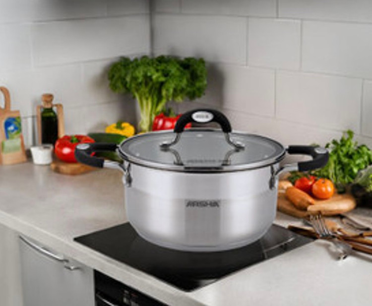 کف قابلمه از آلومینیوم و مس ساخته شده که توزیع گرما را افزایش می دهد.