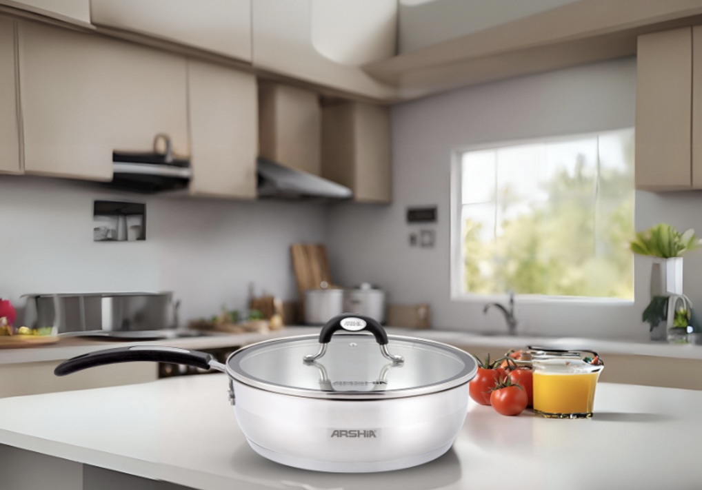کف قابلمه از آلومینیوم و مس ساخته شده که توزیع گرما را افزایش می دهد.