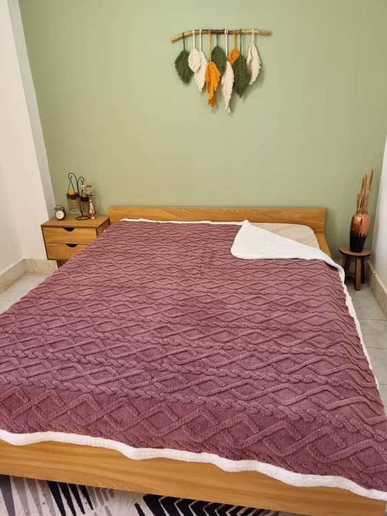 پتو دو نفره گوسفندی با تراکم بالا و طرح گیسبافت، یکی از گزینههای محبوب برای فصول سرد سال است.