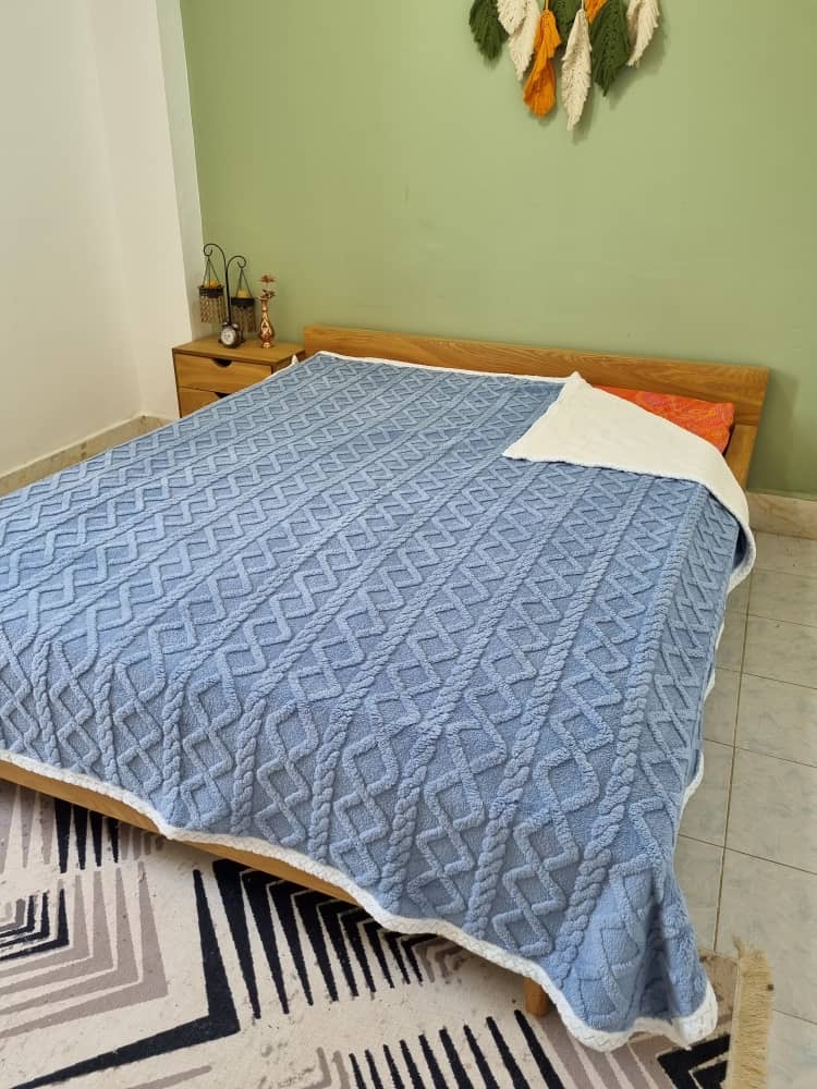 پتو دو نفره گوسفندی با تراکم بالا و طرح گیسبافت، یکی از گزینههای محبوب برای فصول سرد سال است.