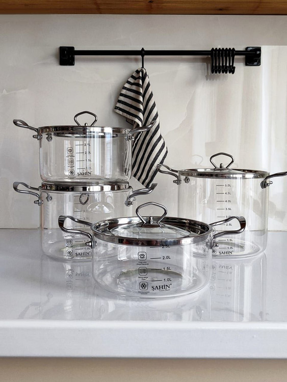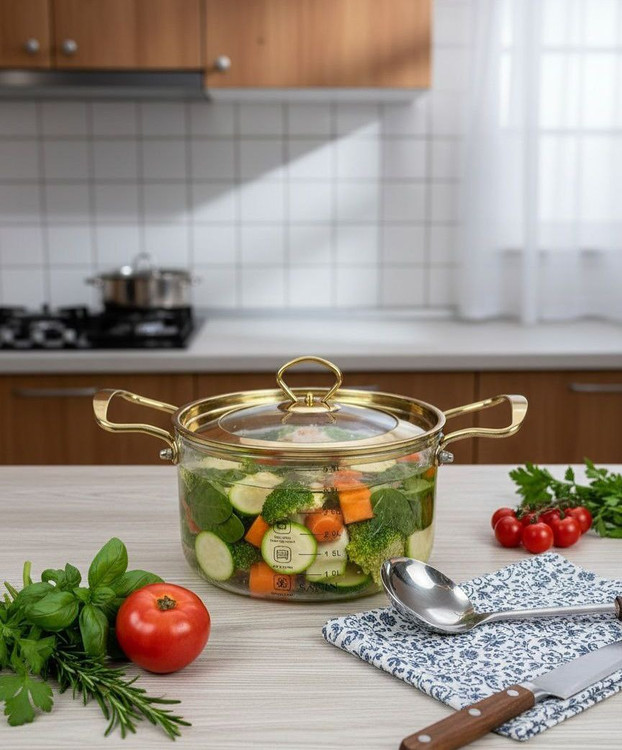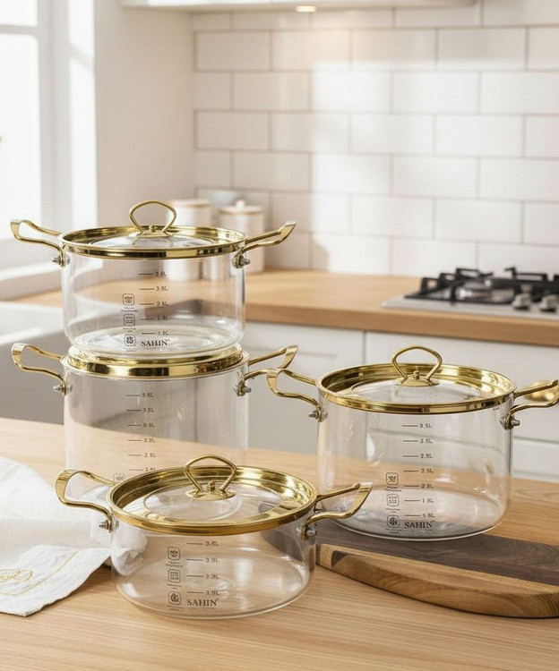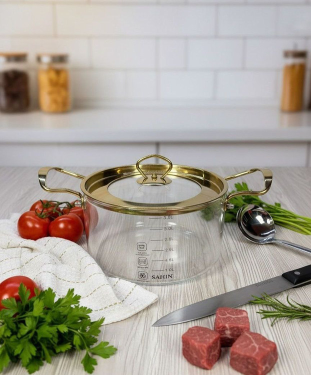 قابلمه پیرکس 3.5 لیتری طلایی و نقره ای برند شاهین Şahin