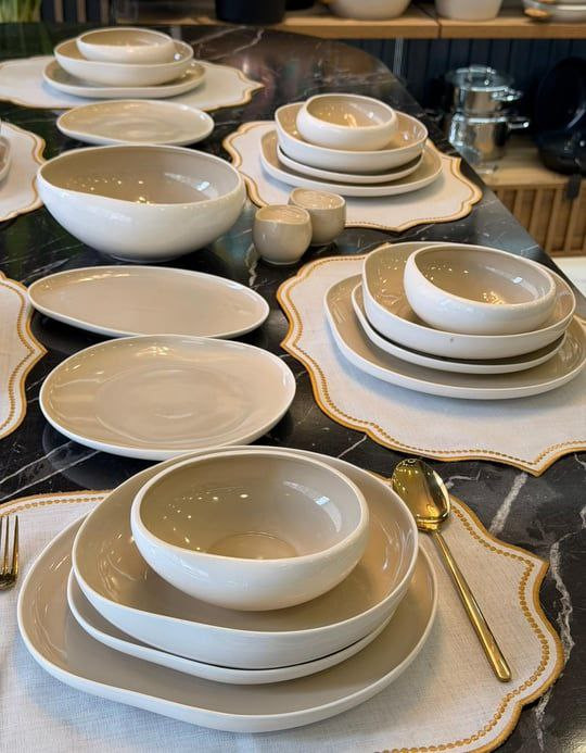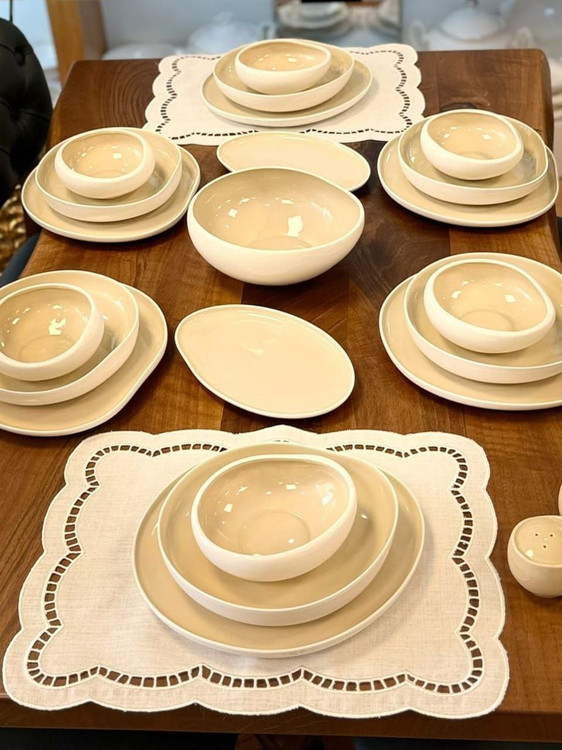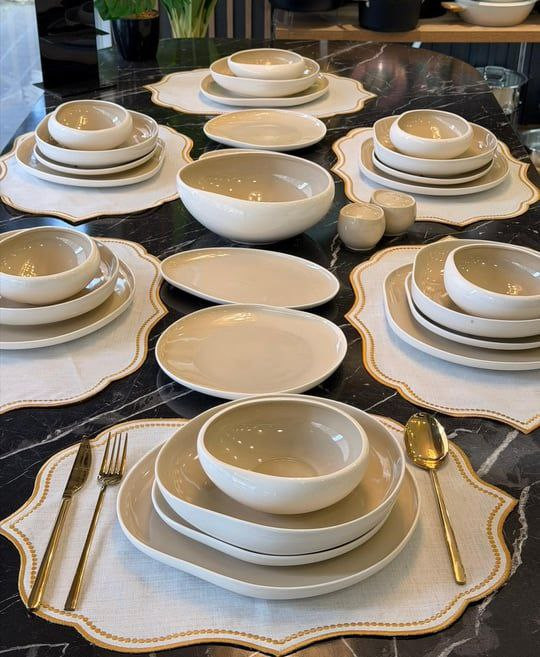 6 عدد بشقاب پلوخوری /6 عدد خورشت خوری /6 عدد پیش دستی / 6 عدد کاسه / 1 عدد کاسه سالاد بزرگ / 2 عدد دیس قایقی / 1 عدد نمکدان /1 عدد فلفل پاش
