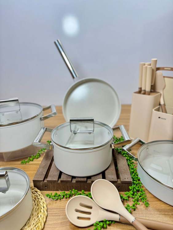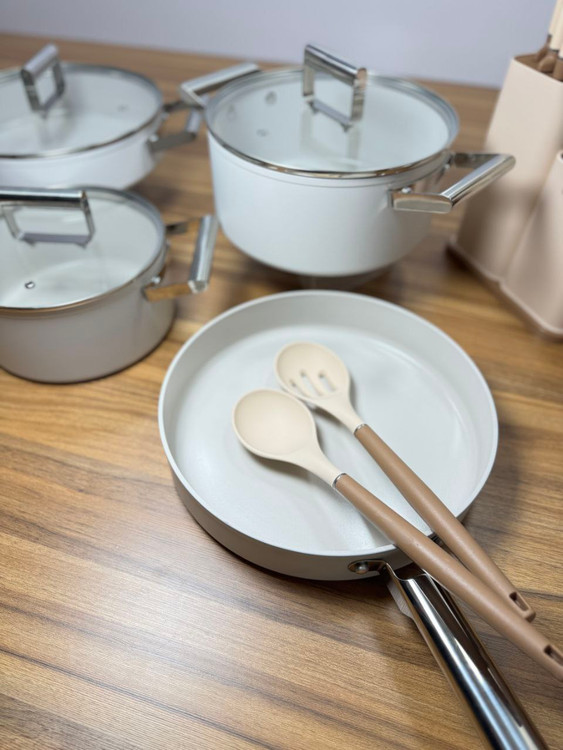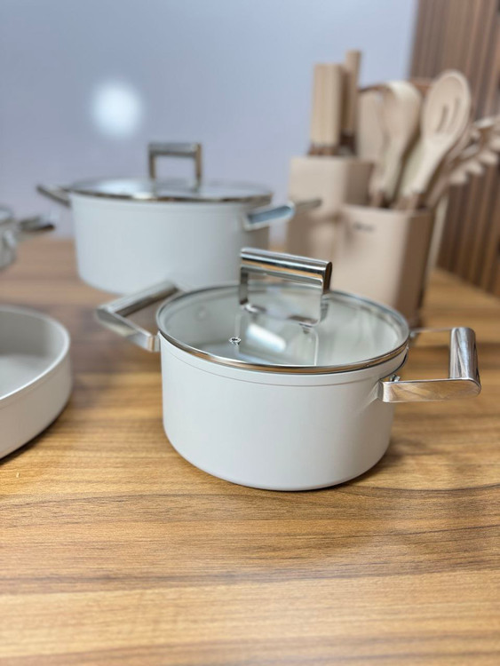 قابلمه دیواره بلند سایز ۲۶ / قابلمه سایز ۲۴ / قابلمه دیواره کوتاه سایز ۲۸ / شیر جوش سایز ۲٠ / تابه تک دسته سایز ۲۸