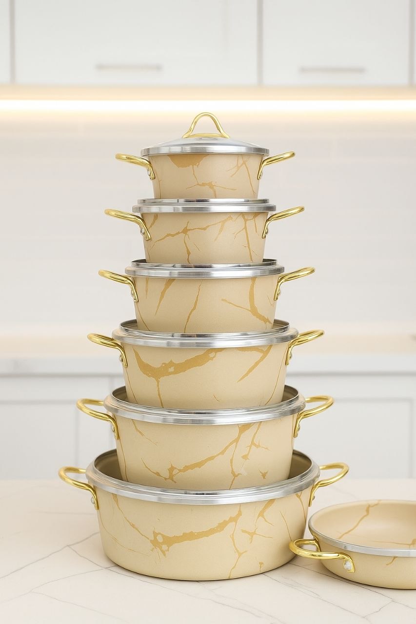سرویس قابلمه ۱۴ پارچه طرح سنگ چدن فورج هلنا