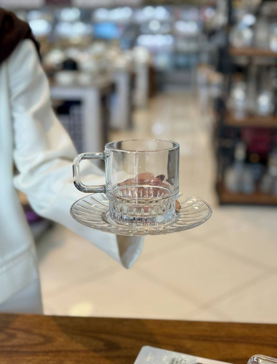 فنجان نعلبکی بلور چایخوری برند Deli Glass