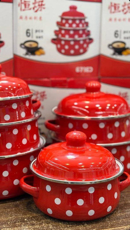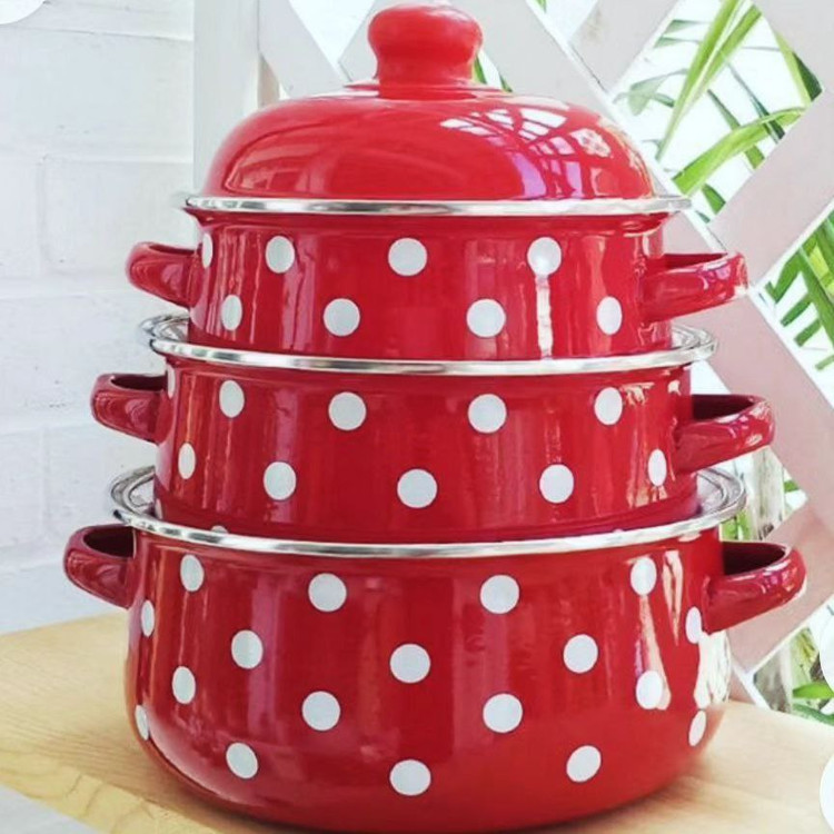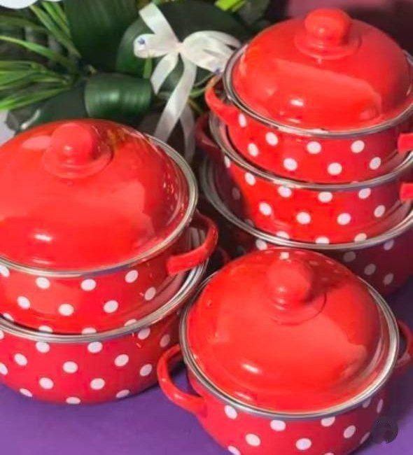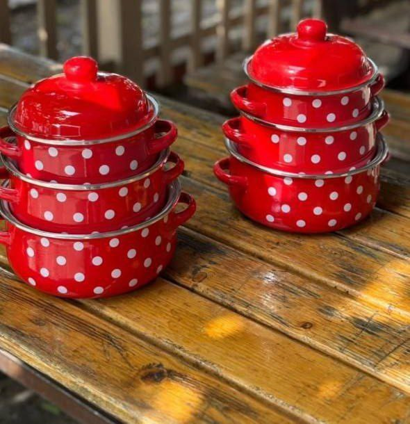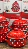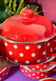 سرویس قابلمه لعابی ۳ تایی خالدار قرمز