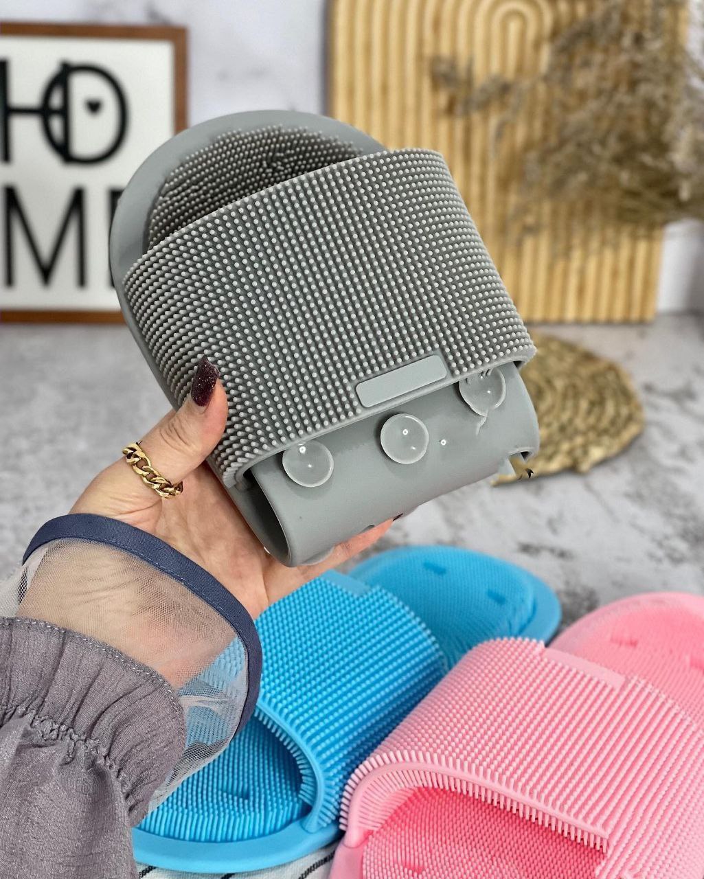 این دمپایی حمام هم کف پا وهم روی پا روبا فرچه های بی نظیر سیلیکونی که داره کاملا تمیزمیکنه😍