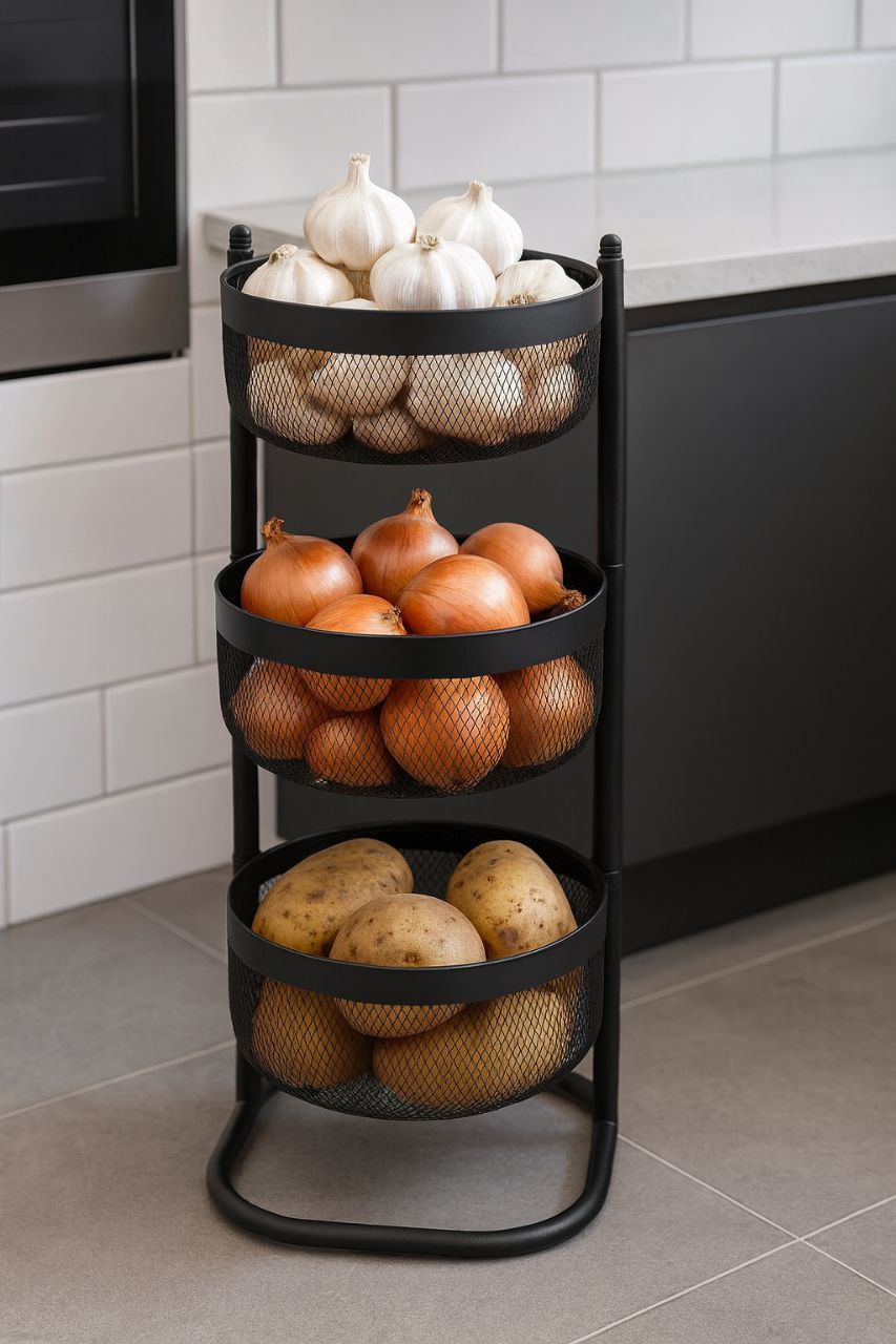 سبد سیب زمینی و پیاز توری متحرک گرد