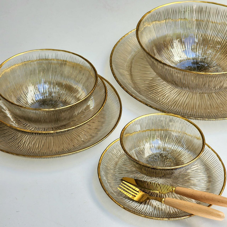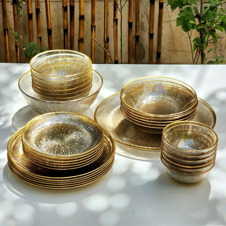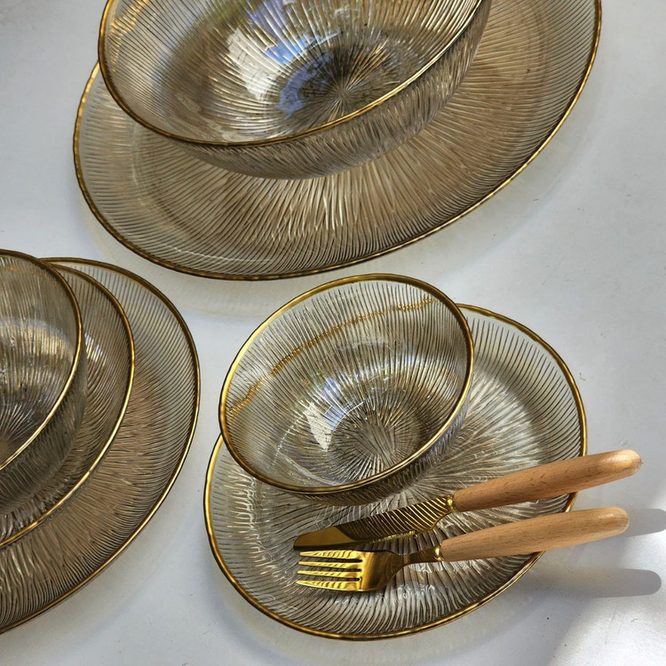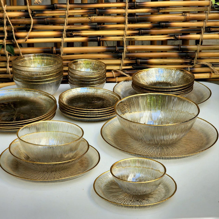 سرویس ۳۳ پارچه غذاخوری شامپاینی لب طلایی برند سولو SOLO