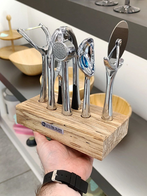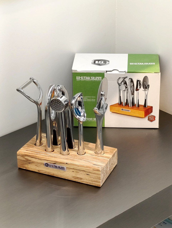ابزار آشپزخانه استیل پایه چوبی