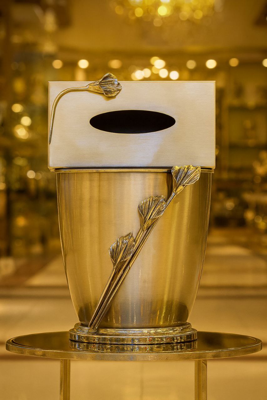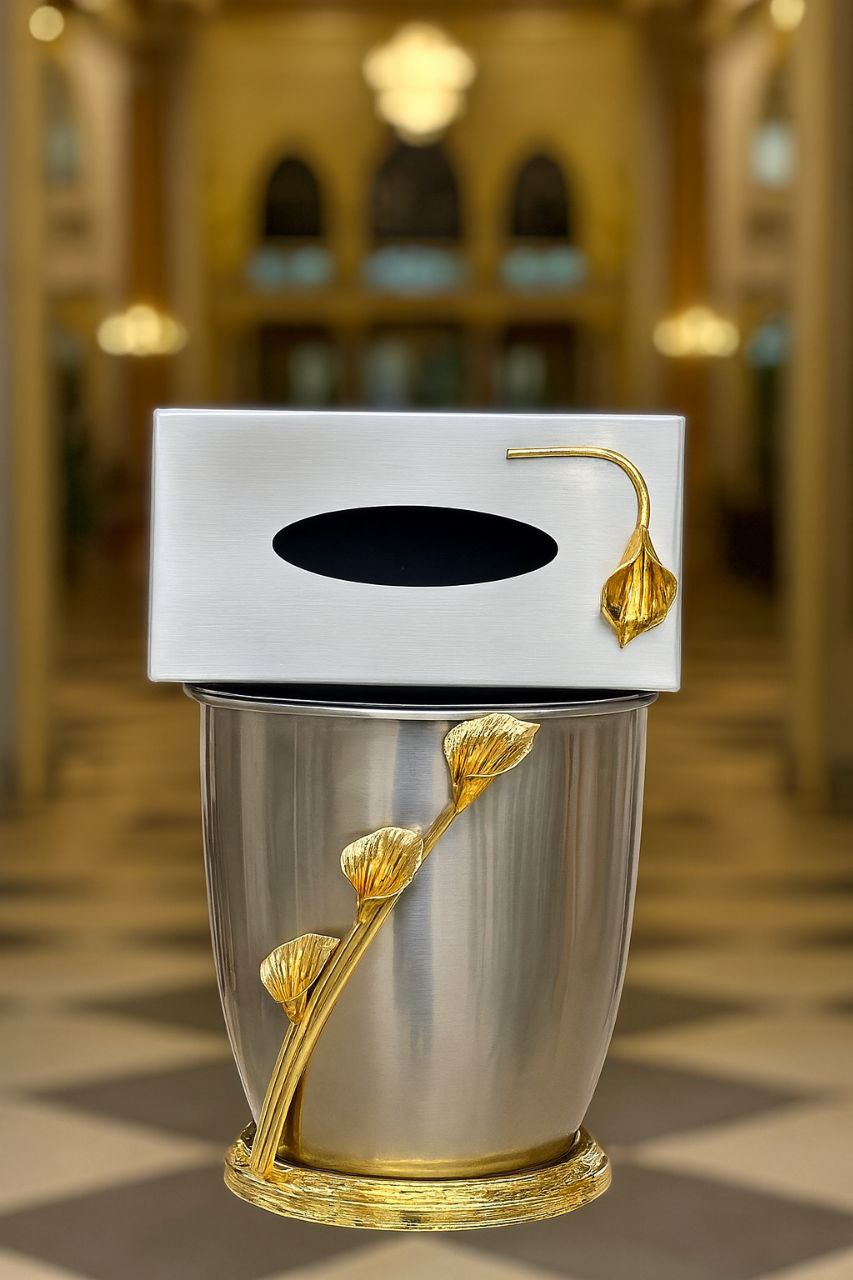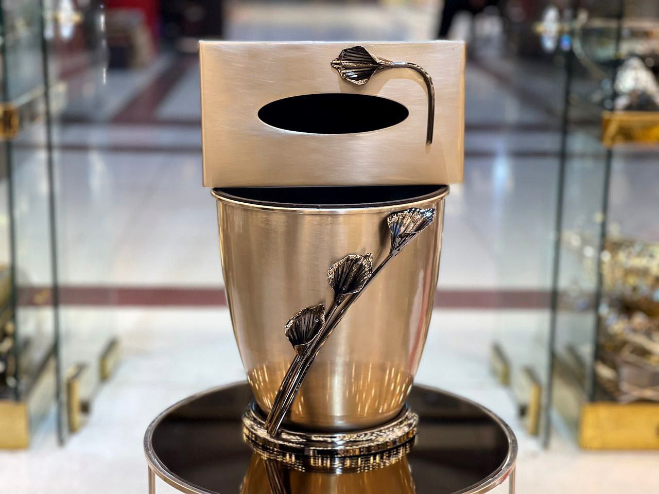 سطل و جا دستمال آلومینیوم طرح گل لیلیوم