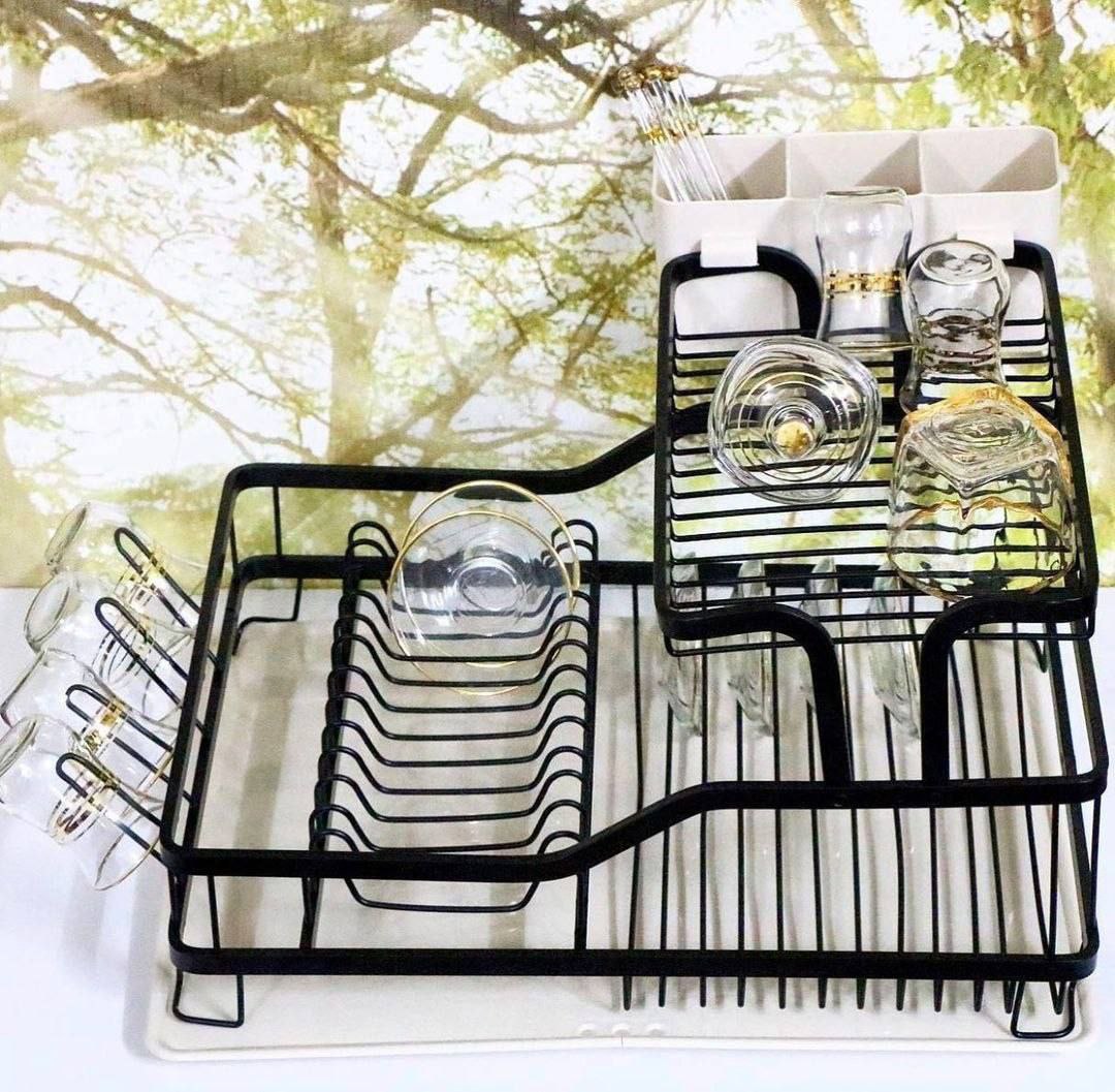 جا ظرفی دوطبقه استیل طرح چوب