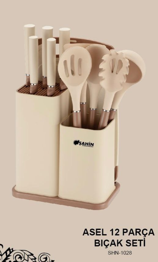 ست ۱۲ پارچه چاقو تخته گوشت و کفگیر ملاقه طرح Asel برند Şahin