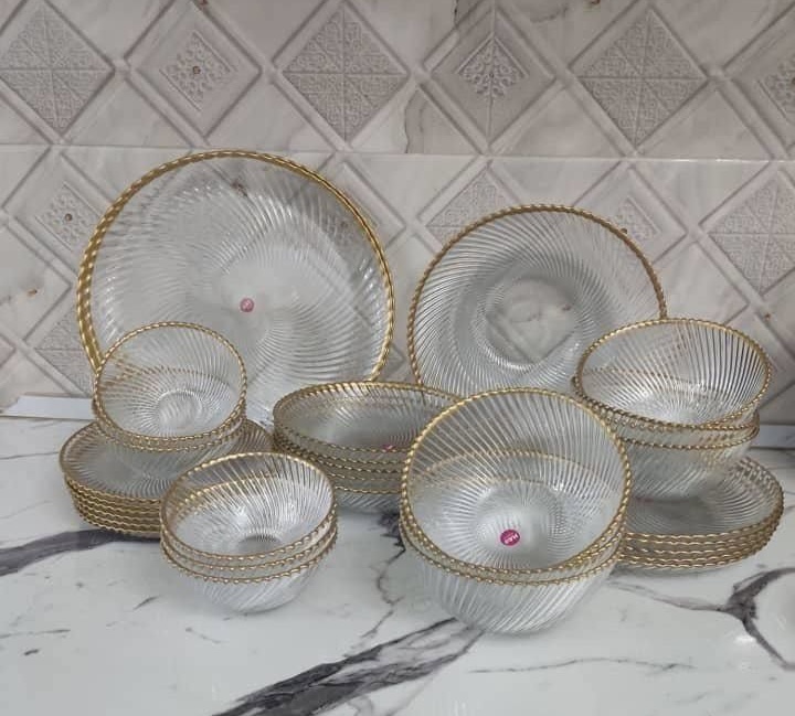 سرویس ۳۲ پارچه بلور نوری تازه مدل پیکسل لب طلا