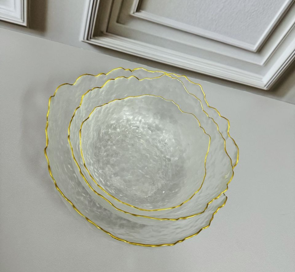 کاسه و پیاله دفرمه 3 تایی لبه طلایی